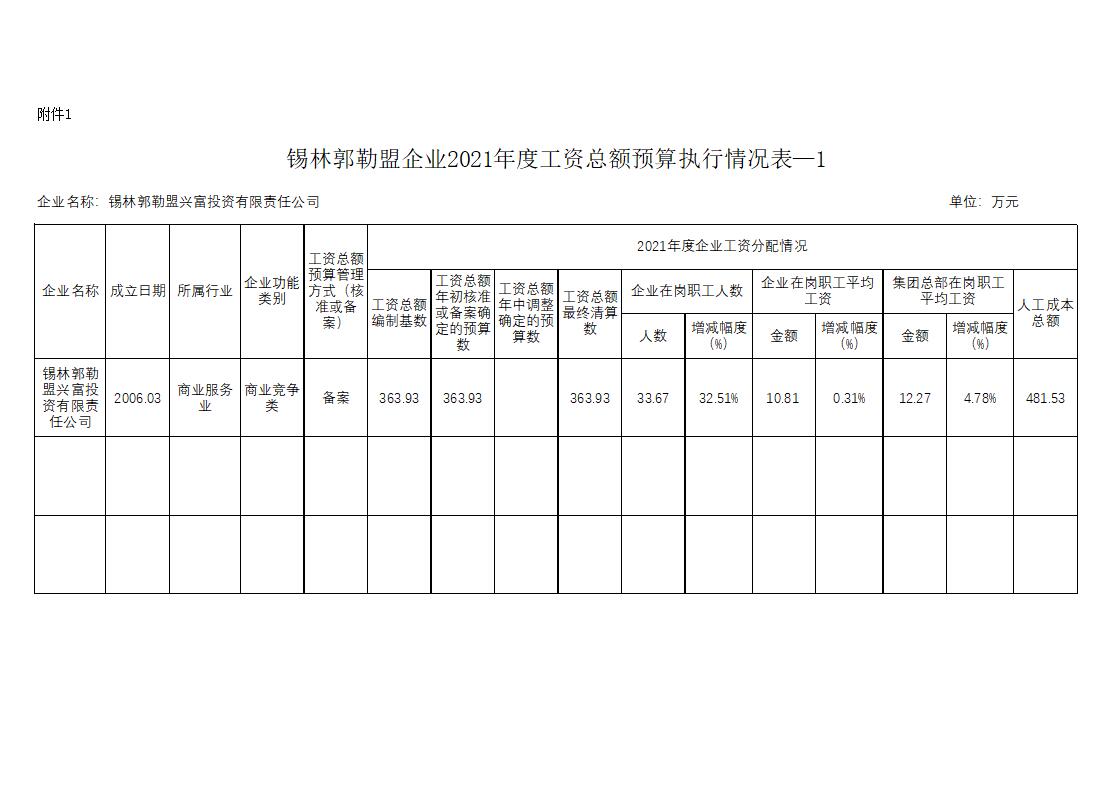 錫林郭勒盟企業(yè)2021年度工資總額預(yù)算執(zhí)行情況